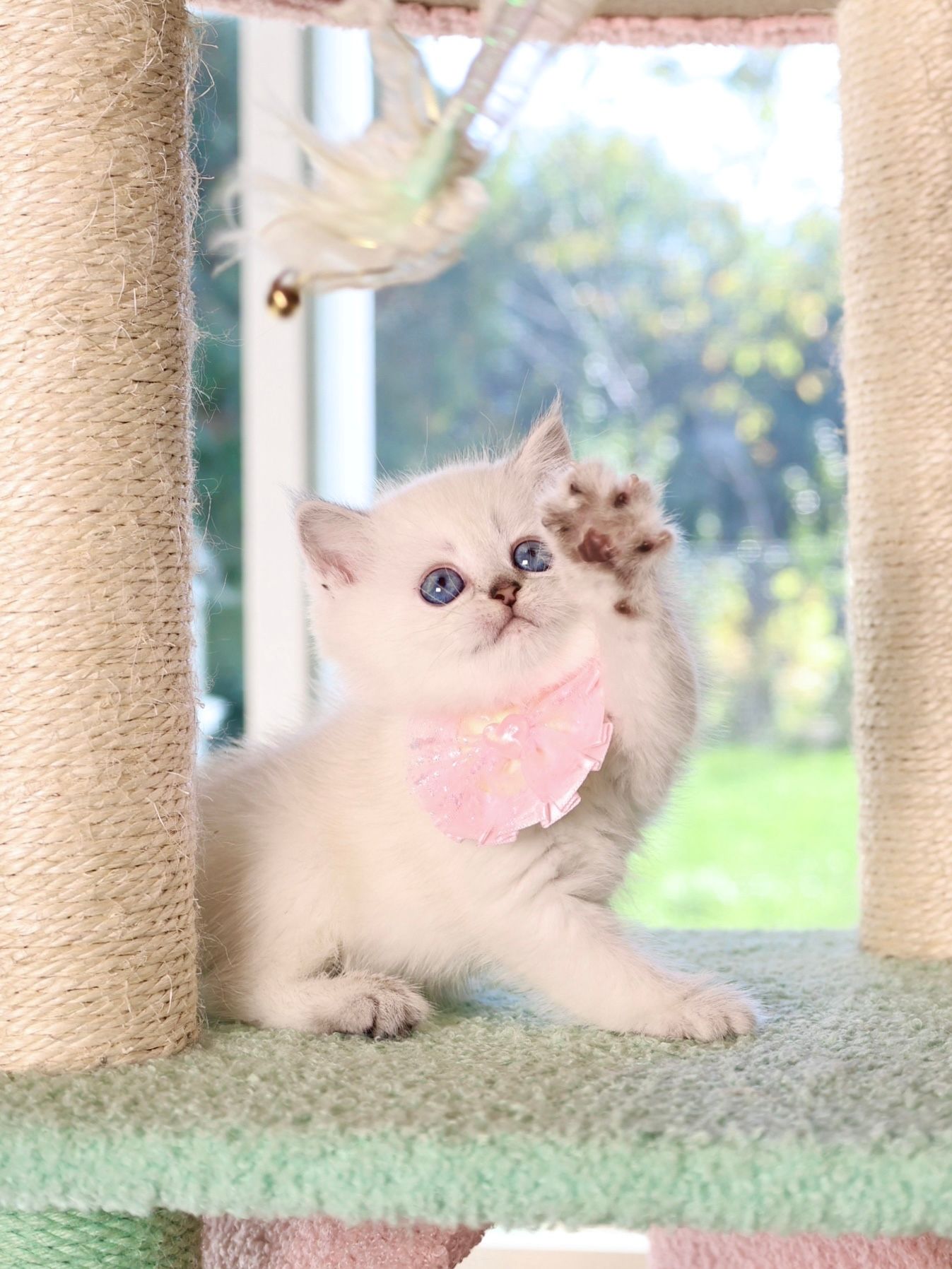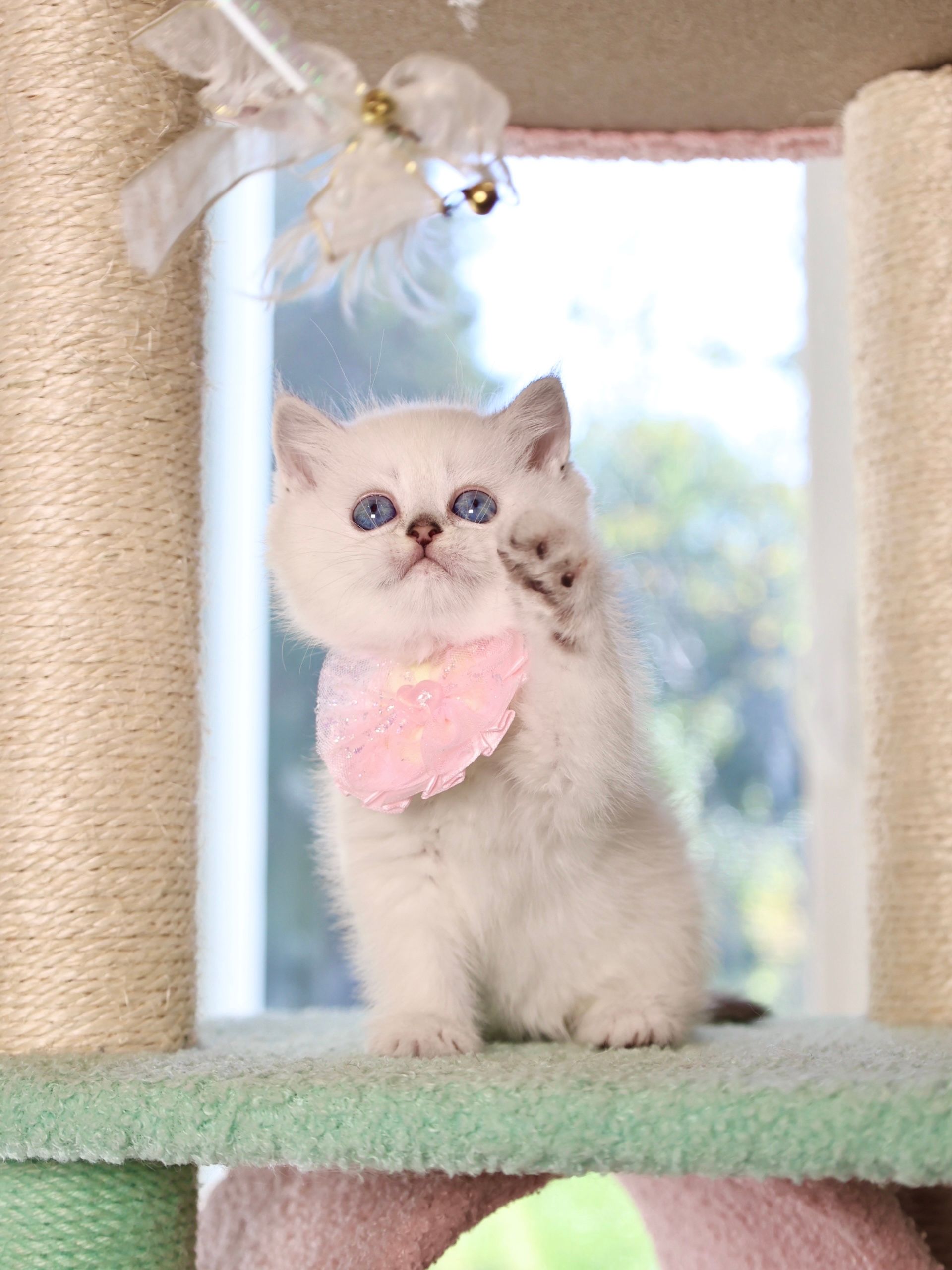 Poe is one of our playful blue-eyed princesses, full of sparkle and joy! With her chubby cheeks and curious spirit, she feels like a little sprite who’s always ready to turn every corner into an adventure. She’s vocal, affectionate, and loves being around people — the kind of kitten that follows you, chats with you, and makes every day brighter.