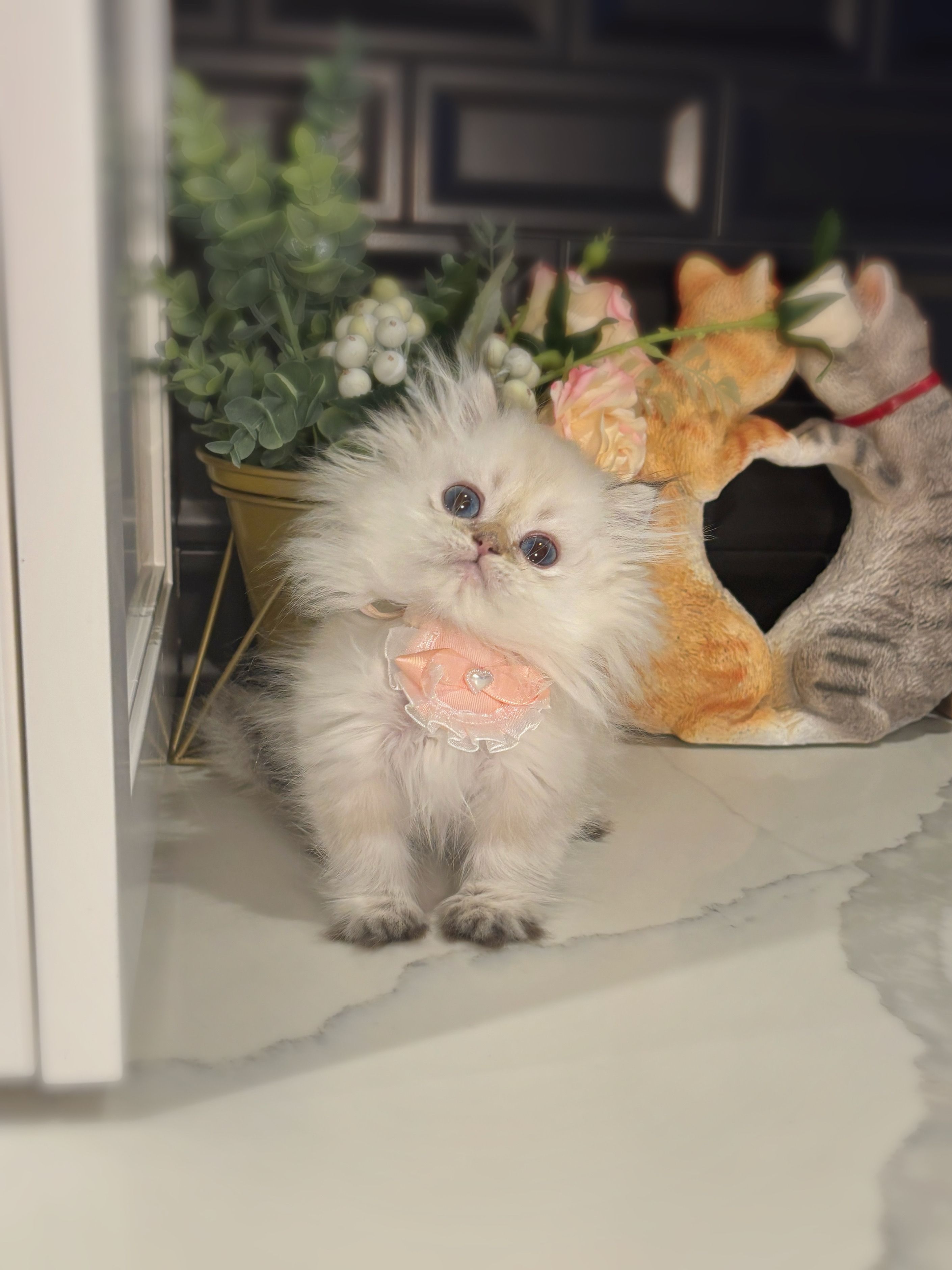 ✨ As a golden shaded point, Snowball will grow into a breathtaking angelic beauty. His coat will stay creamy white, kissed with warm golden accents that glow like sunlight on fresh snow. Think marshmallow-soft, plush like a tiny cloud, the kind of boy you just want to scoop up and never put down — a true fairytale companion.